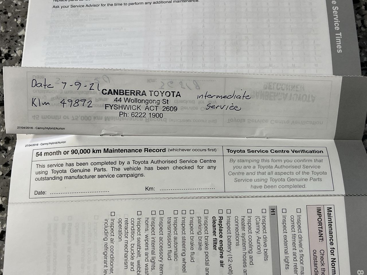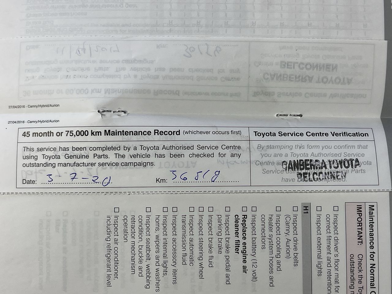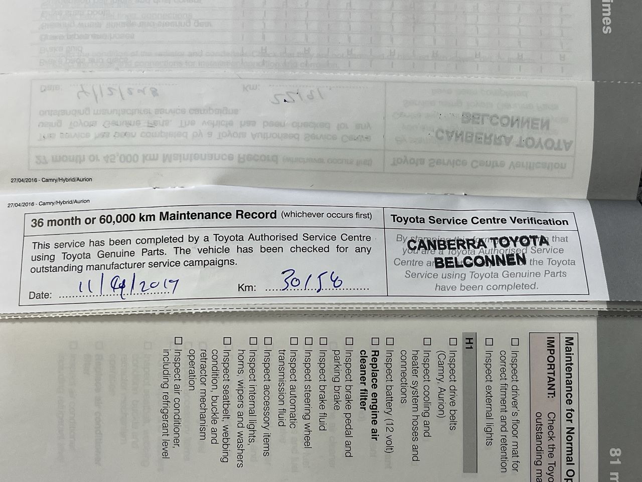 Part of Sale 2016 Toyota Camry Atara S ASV50R Automatic Sedan