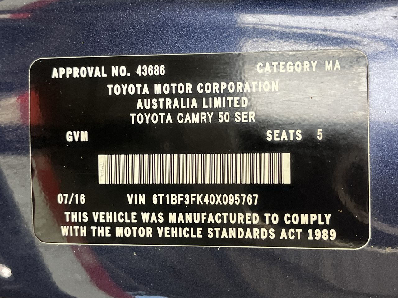 2016 Toyota Camry Atara S ASV50R Automatic Sedan