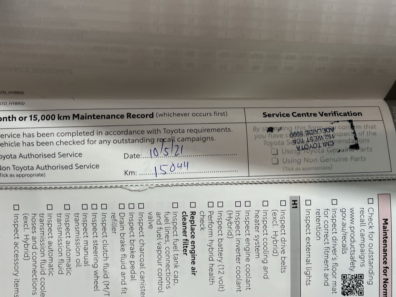 Is Inspection of the vehicle necessary?