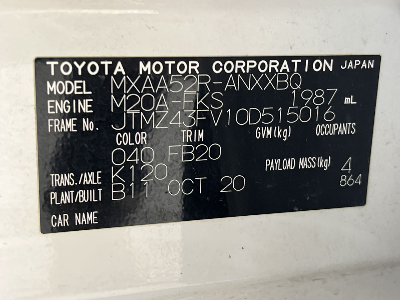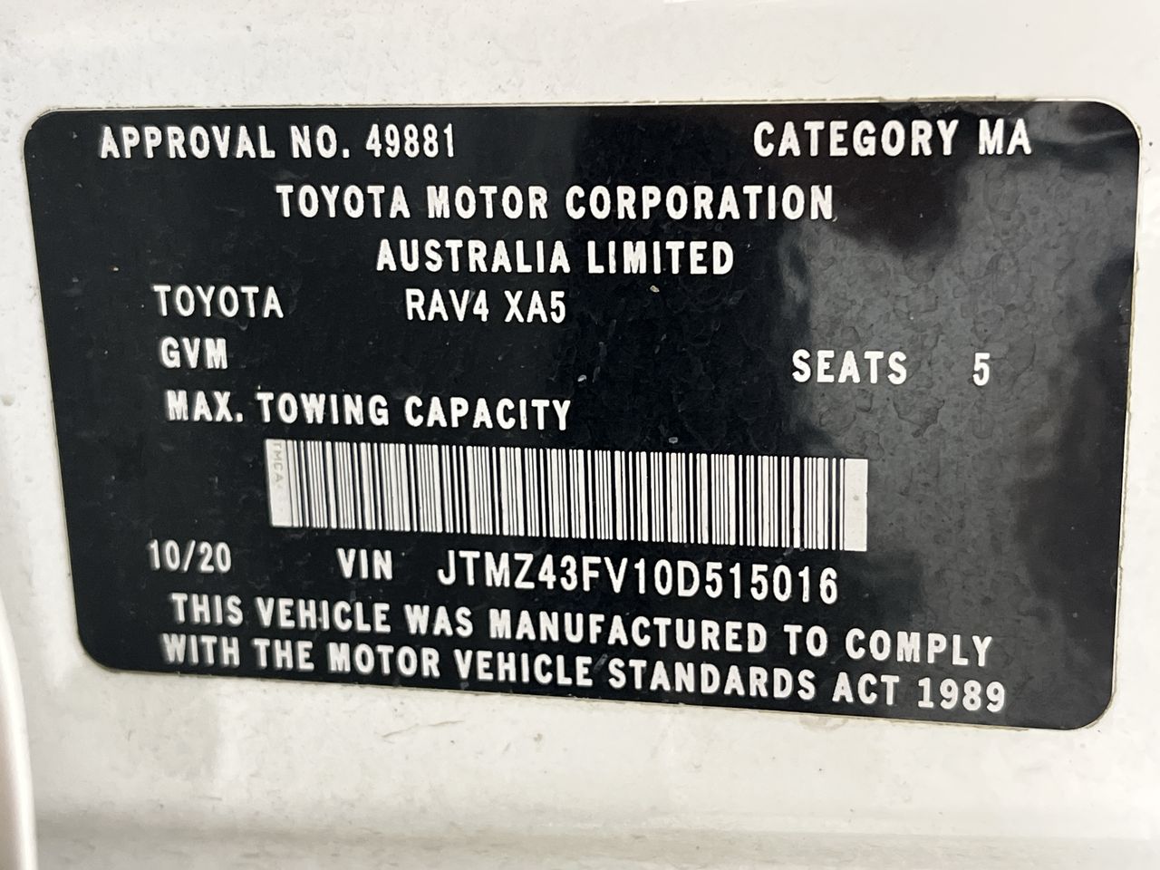 (SN:JTMZ43FV10D515016) (882240-128)