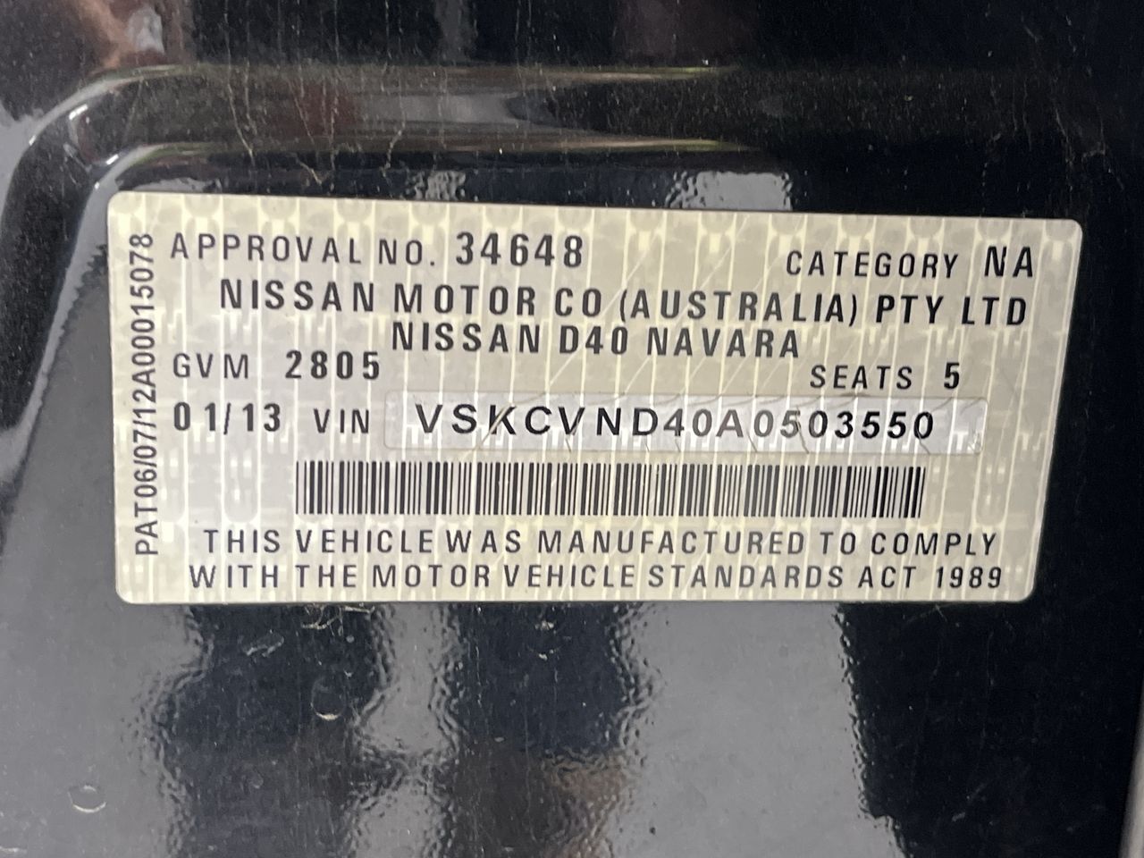 (SN:VSKCVND40A0503550) (874993-12)