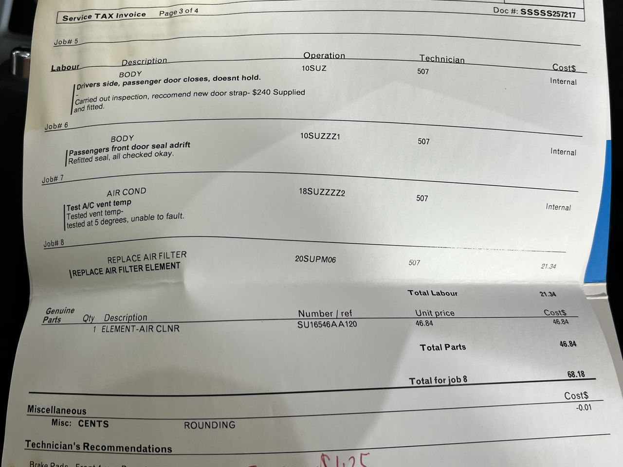 • Indicated Odometer Reading: 167913