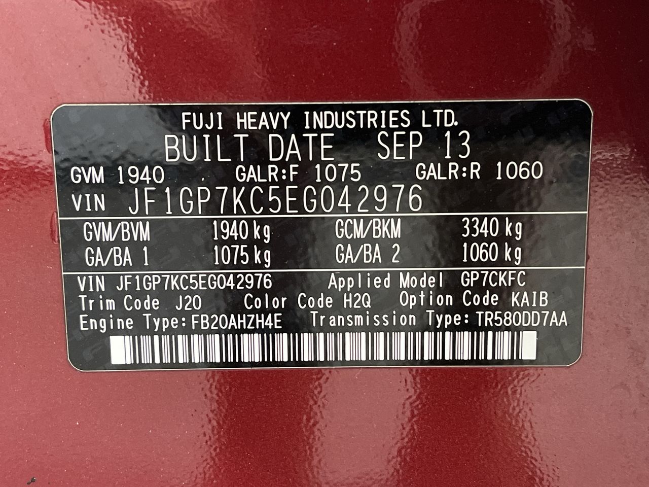 • VIN: JF1GP7KC5EG042976