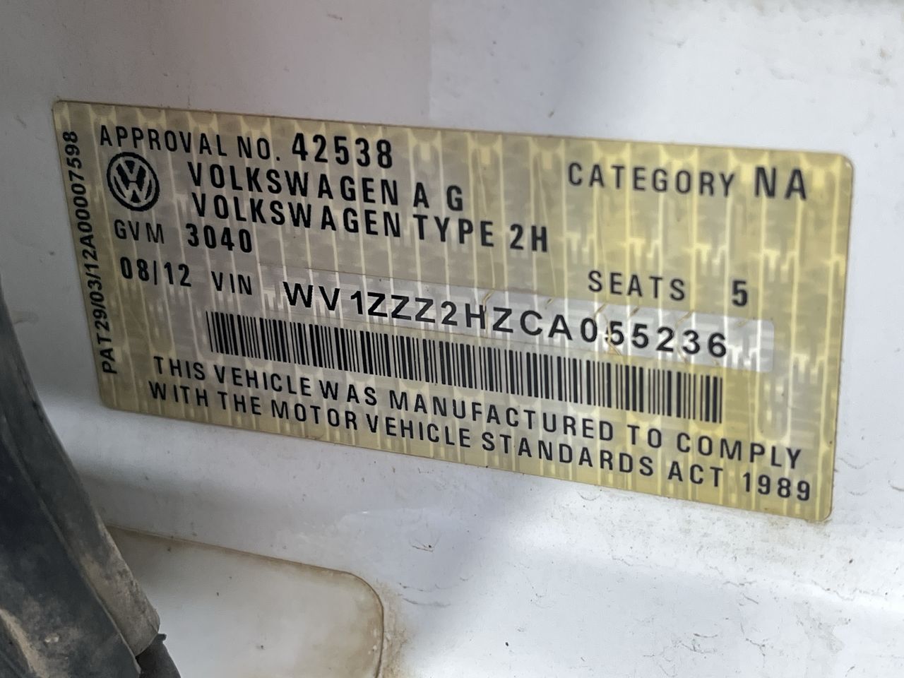 • VIN: WV1ZZZ2HZCA055236