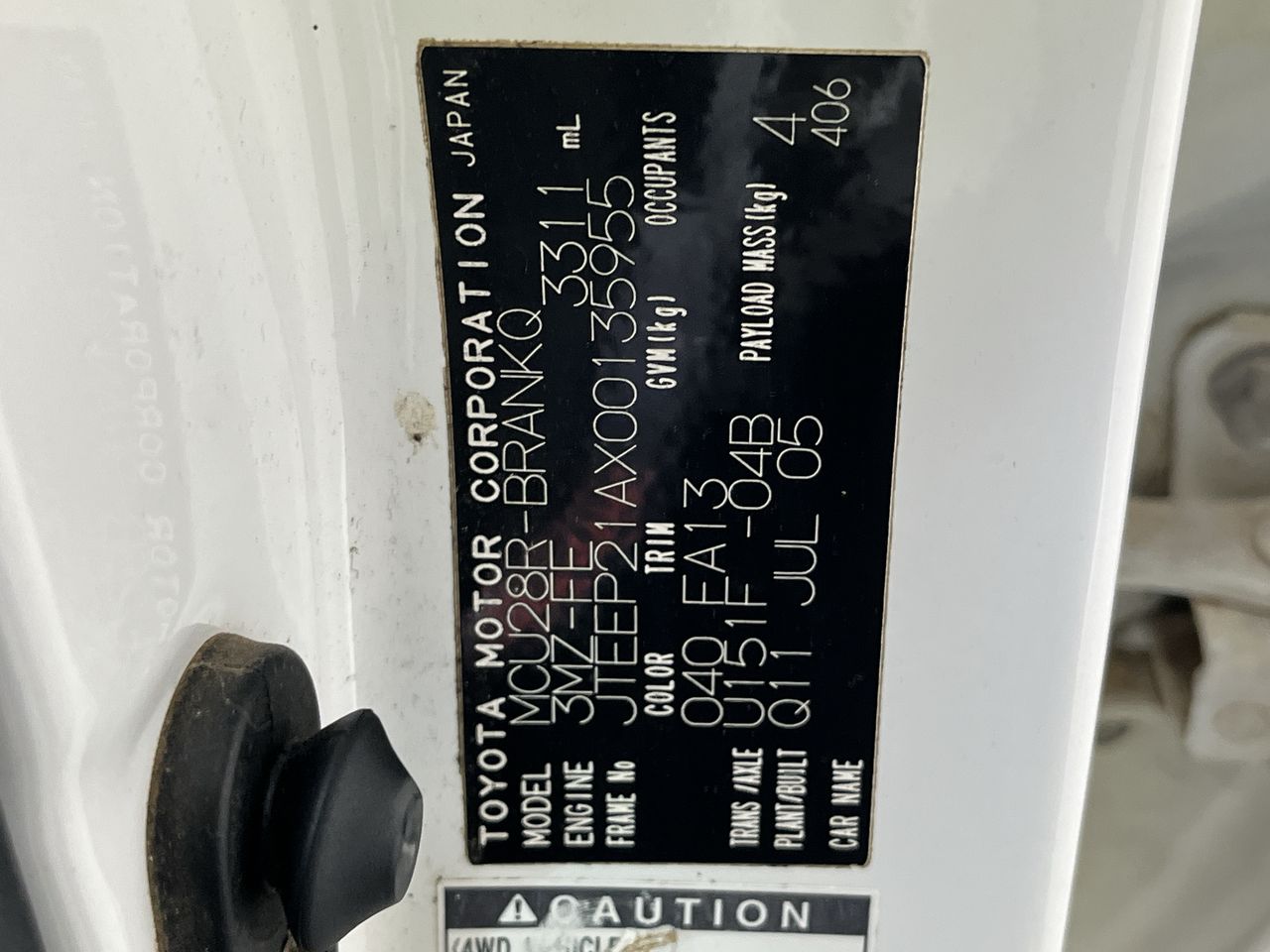• VIN: JTEEP21AX00135955