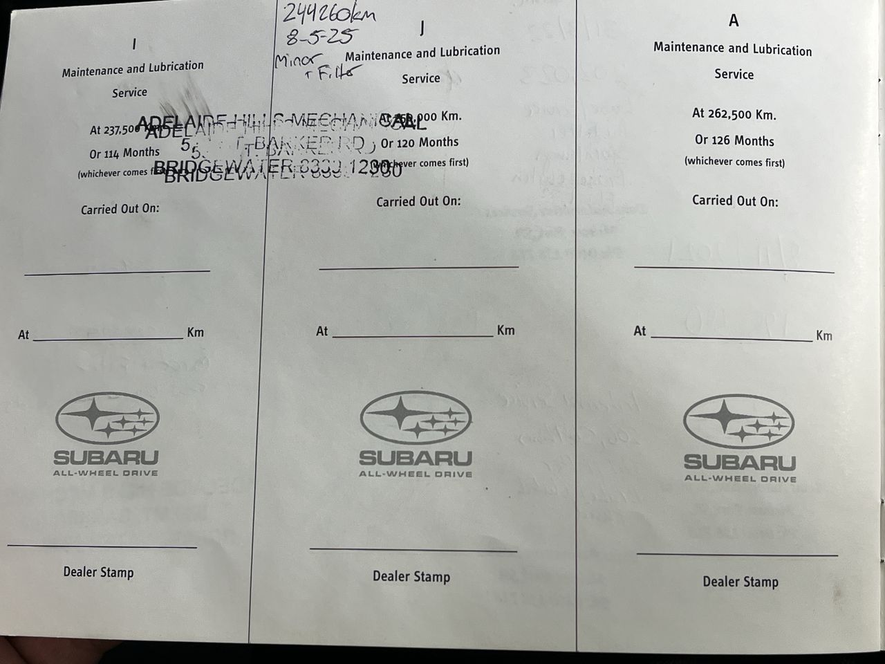 • Indicated Odometer Reading: 250965