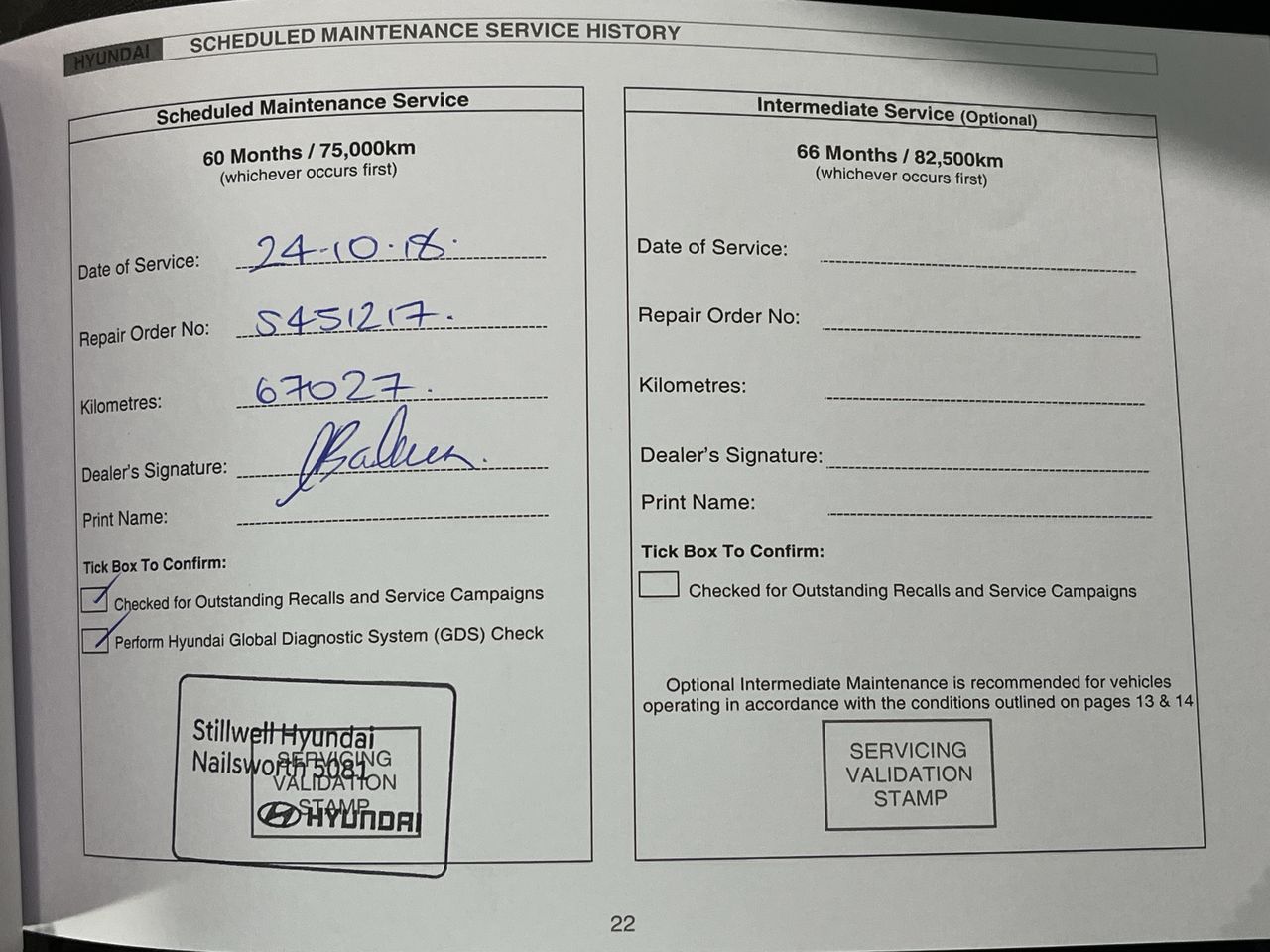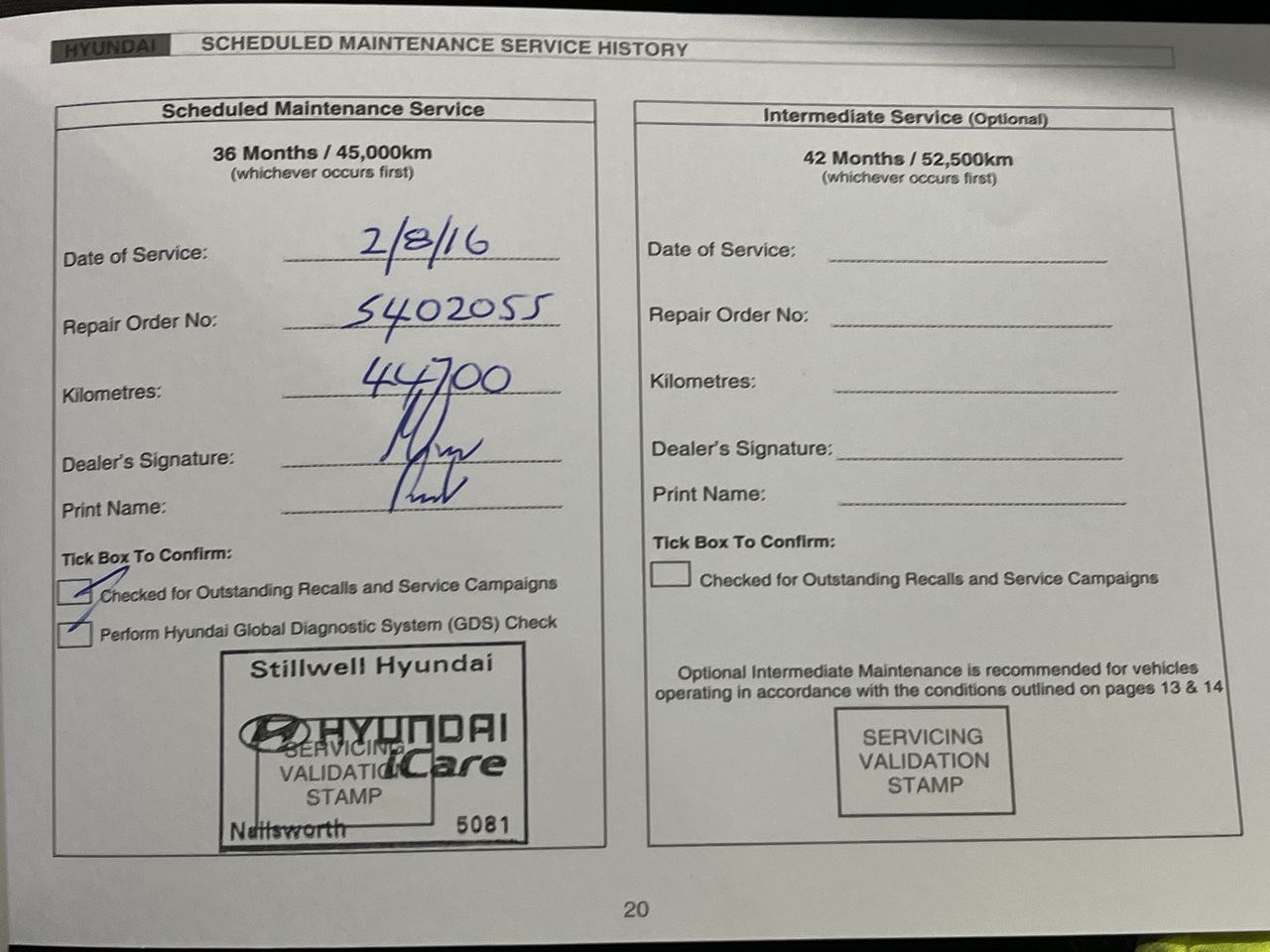 • Service History: Yes