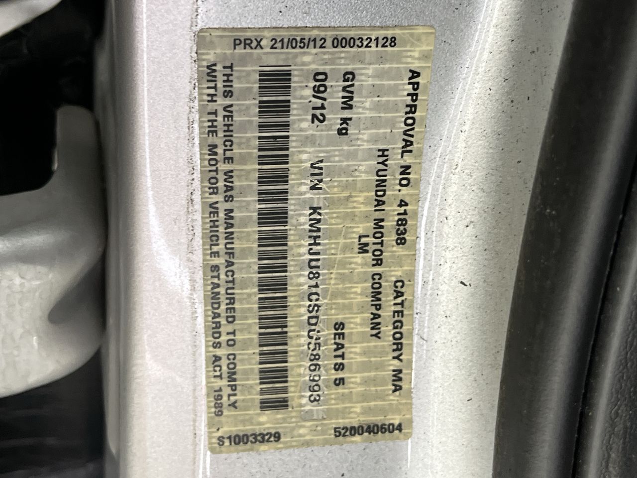 • VIN: KMHJU81CSDU586993