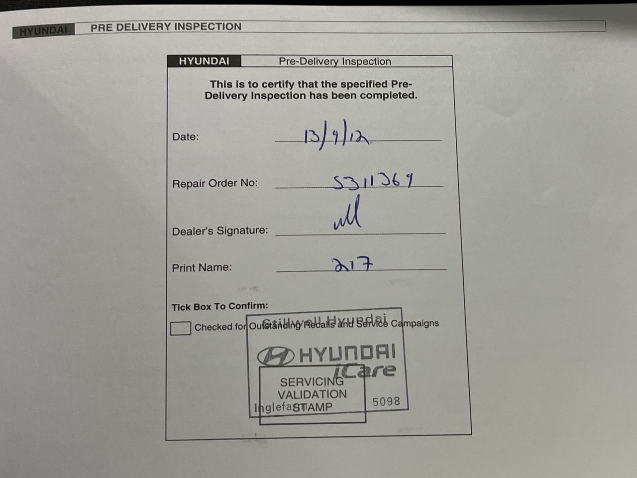 Have we checked if there is a Written Off Vehicle Record or finance owing on the vehicle?