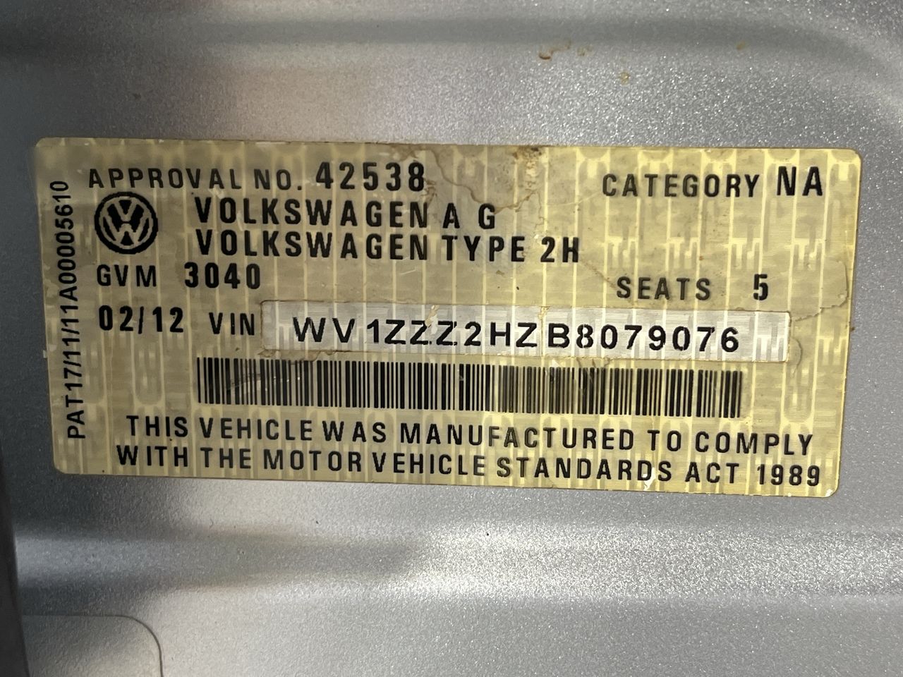 • VIN: WV1ZZZ2HZB8079076