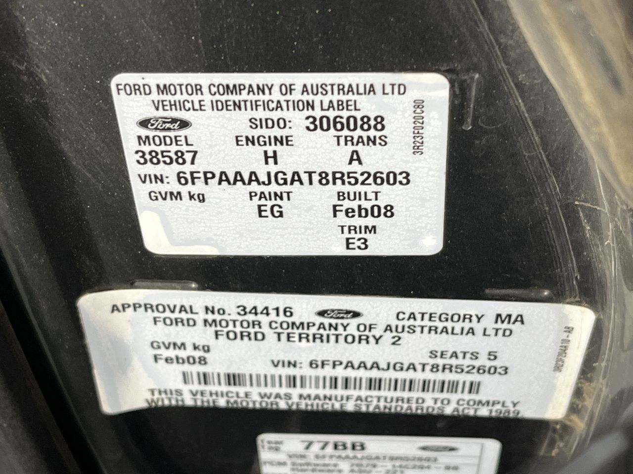 • VIN: 6FPAAAJGAT8R52603