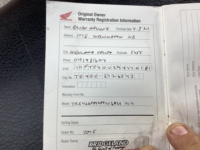 | Part of Sale | 2021 Honda TRX420 FM2 Motorcycle | ||||||||||||||
