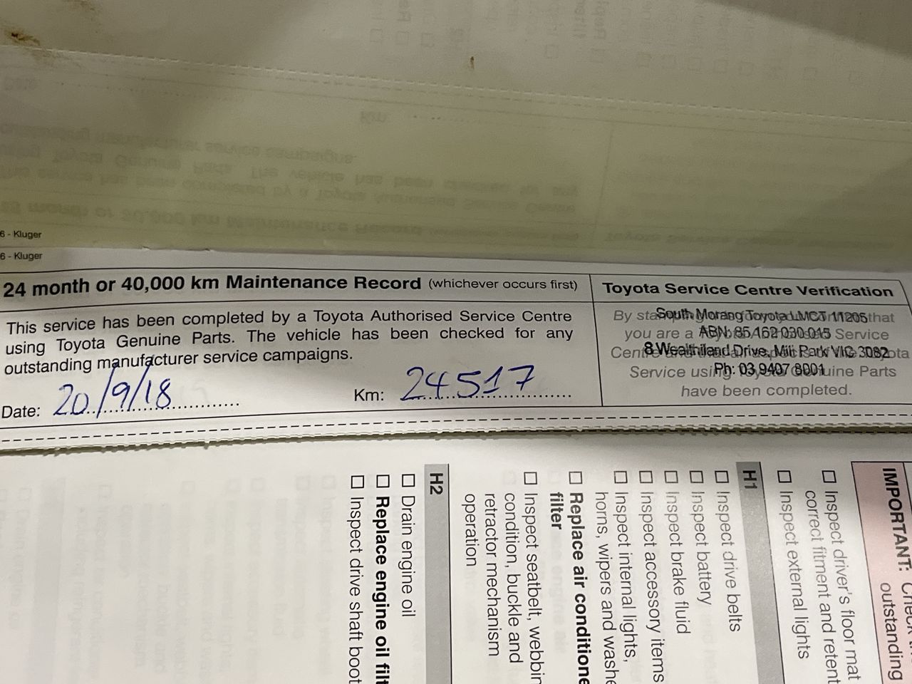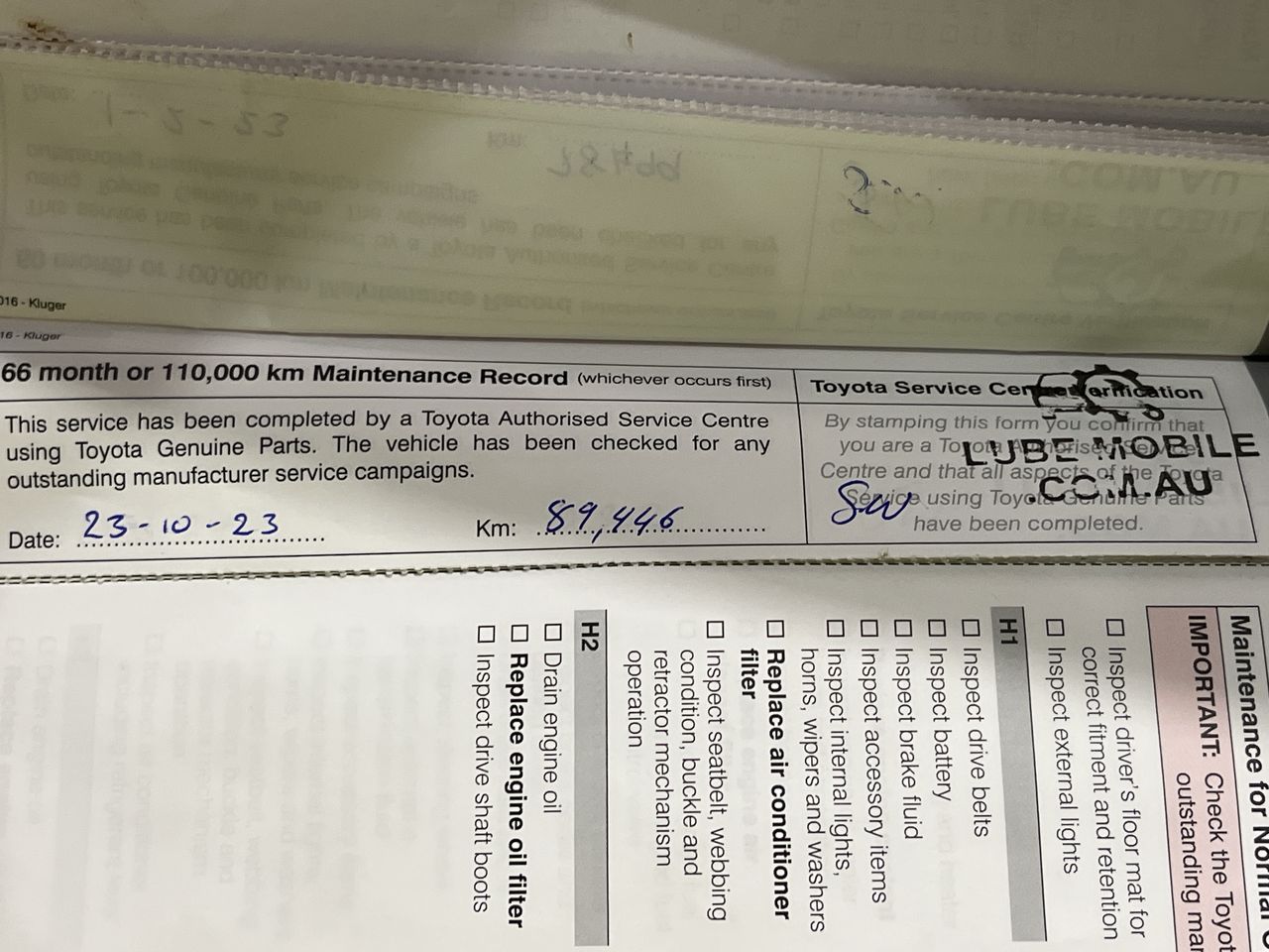 | Part of Sale | 2016 Toyota Kluger 4X4 GX GSU55R | ||||||||||||||