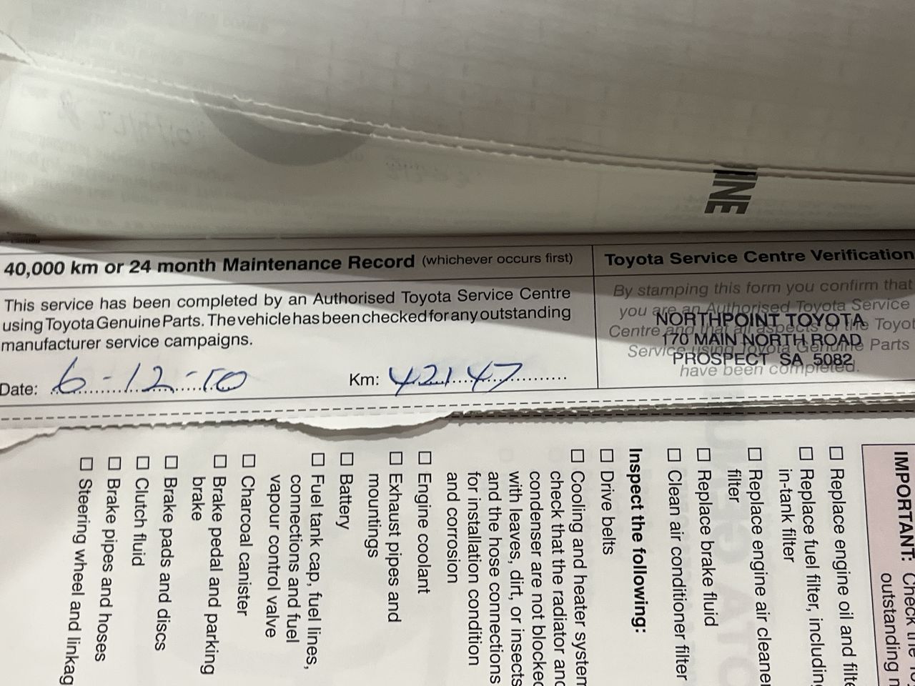Is Inspection of the vehicle necessary?