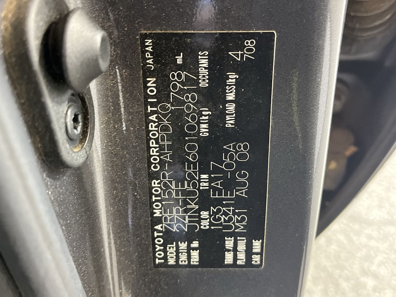• VIN: JTNKU52E601069817