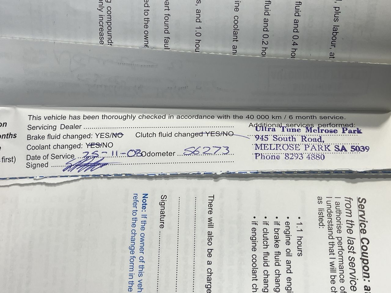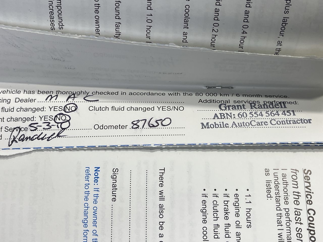 • Service History: Yes