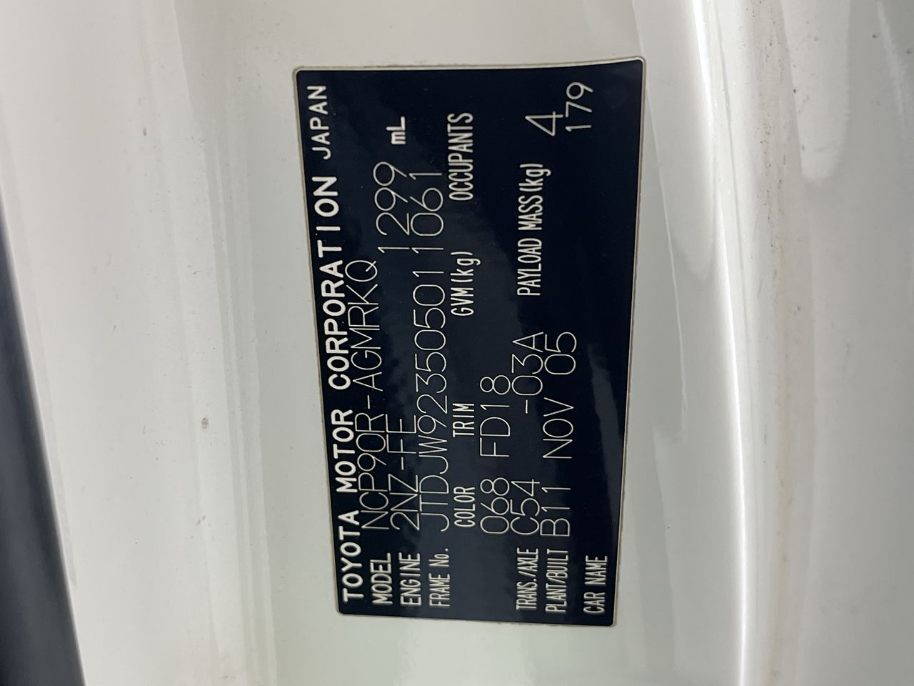 • Engine No: 2NZ3894493