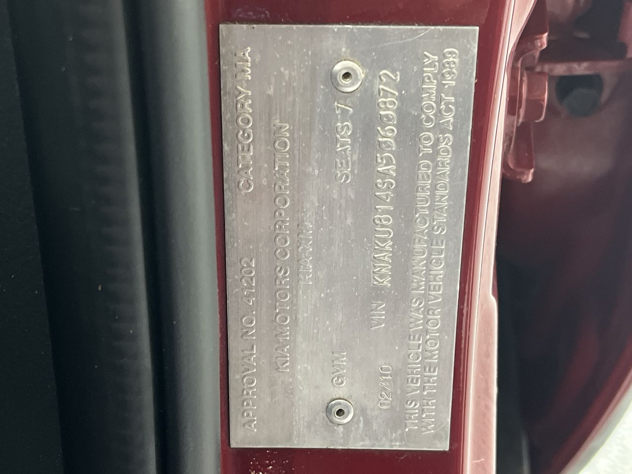 • VIN: KNAKU814SA5060872