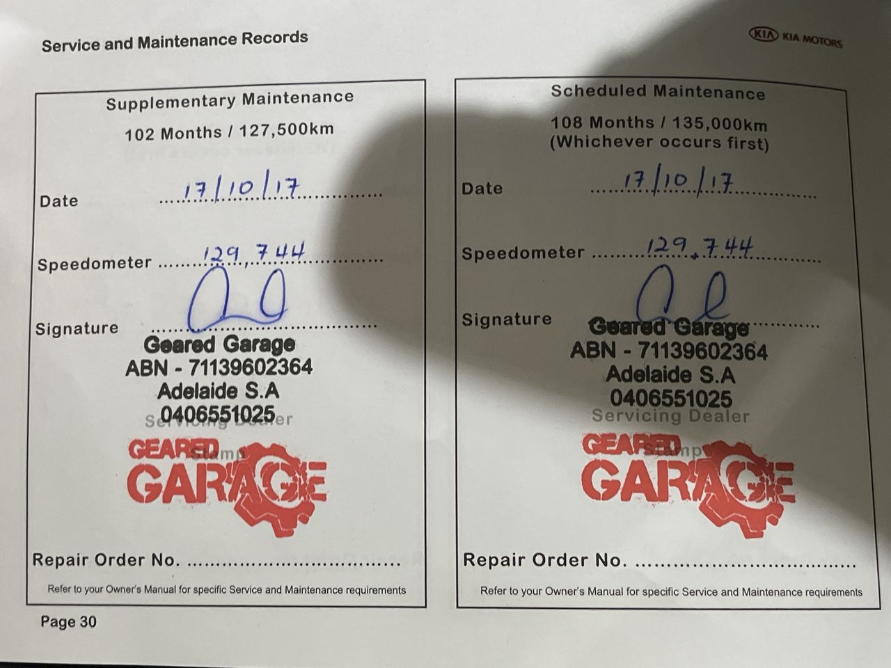 • Indicated Odometer Reading: 308608