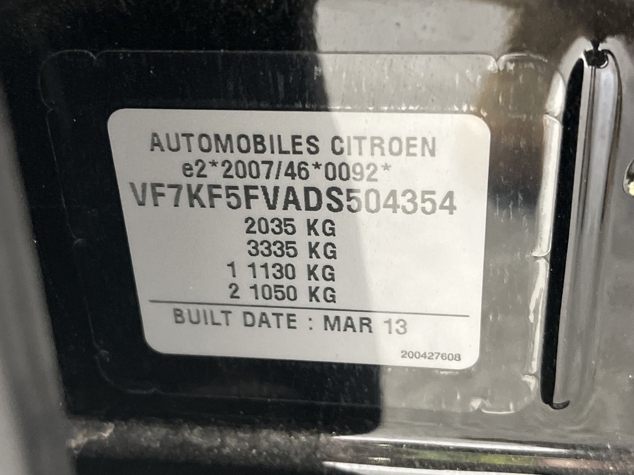 • VIN: VF7KF5FVADS504354