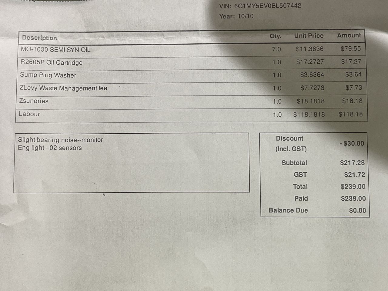 (SN:6G1MY5EV0BL507442) (882243-166)