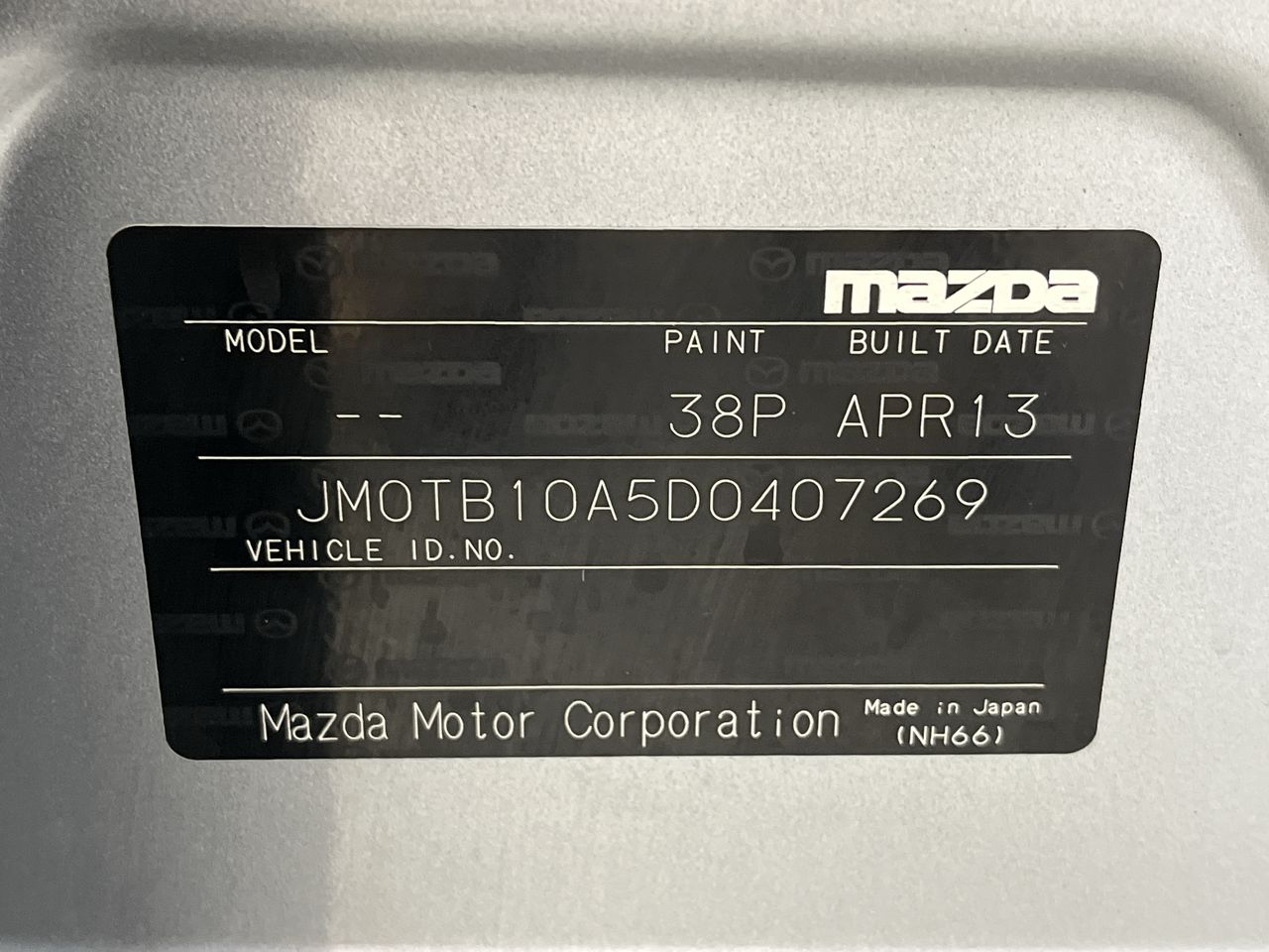 • VIN: JM0TB10A5D0407269