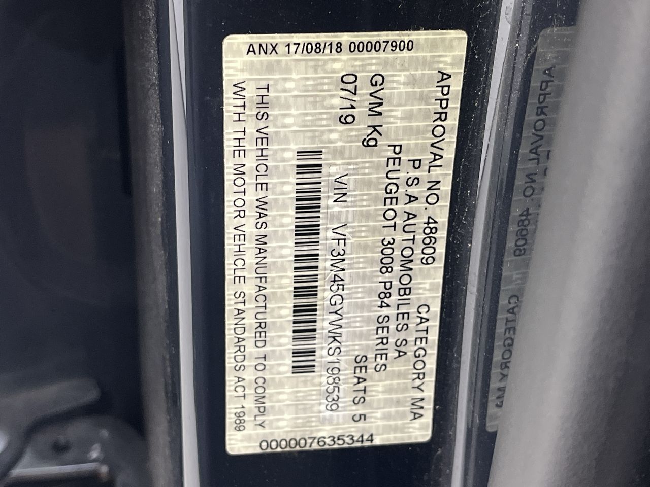 • VIN: VF3M45GYWKS198539