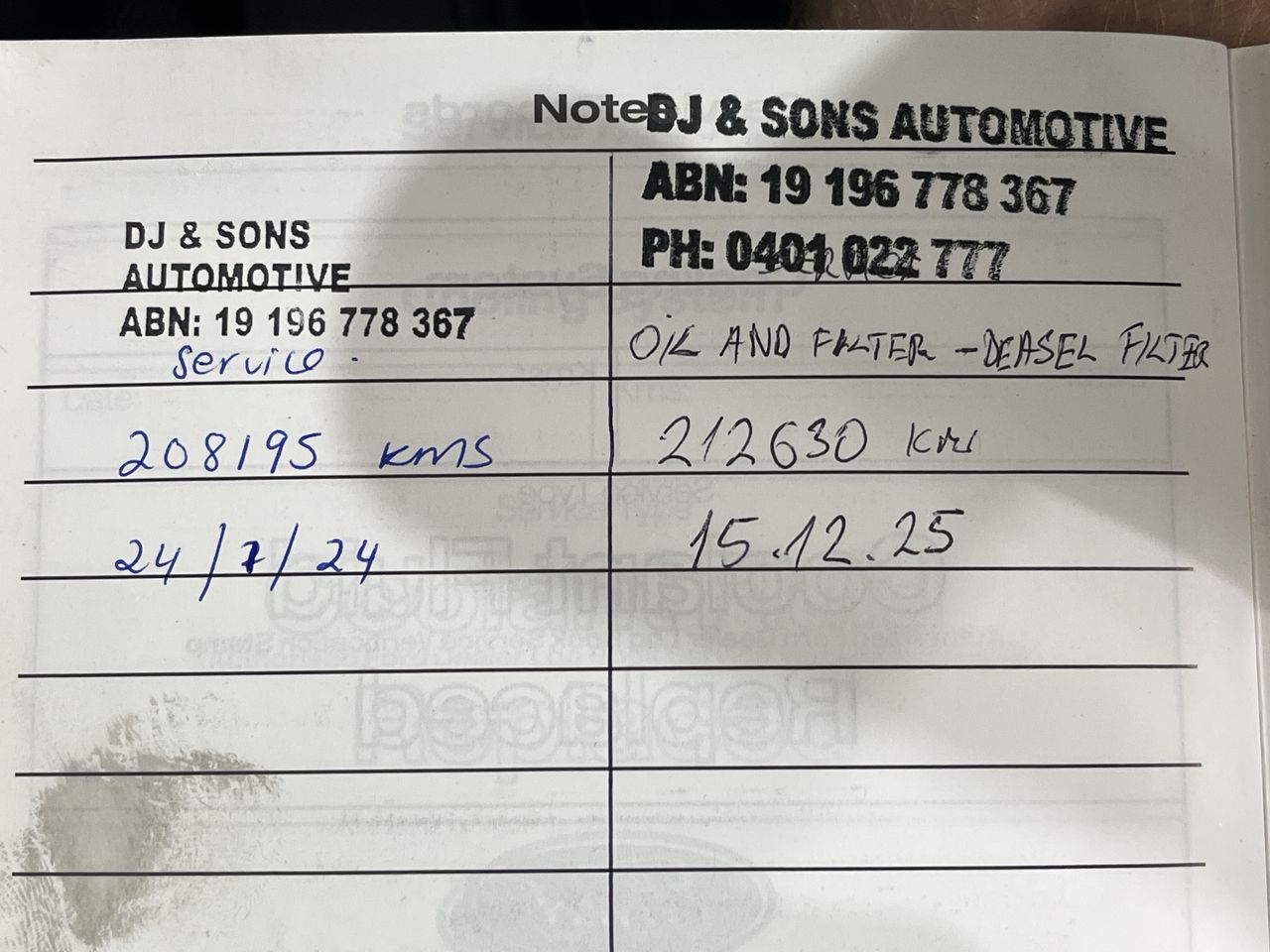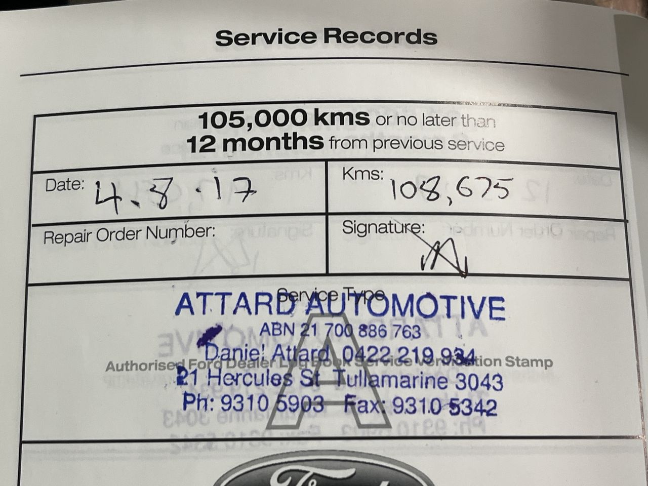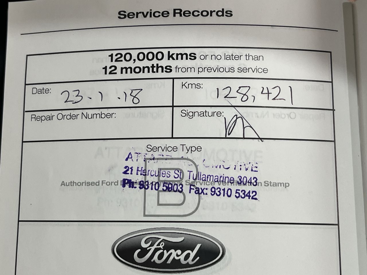 • Service History: Yes