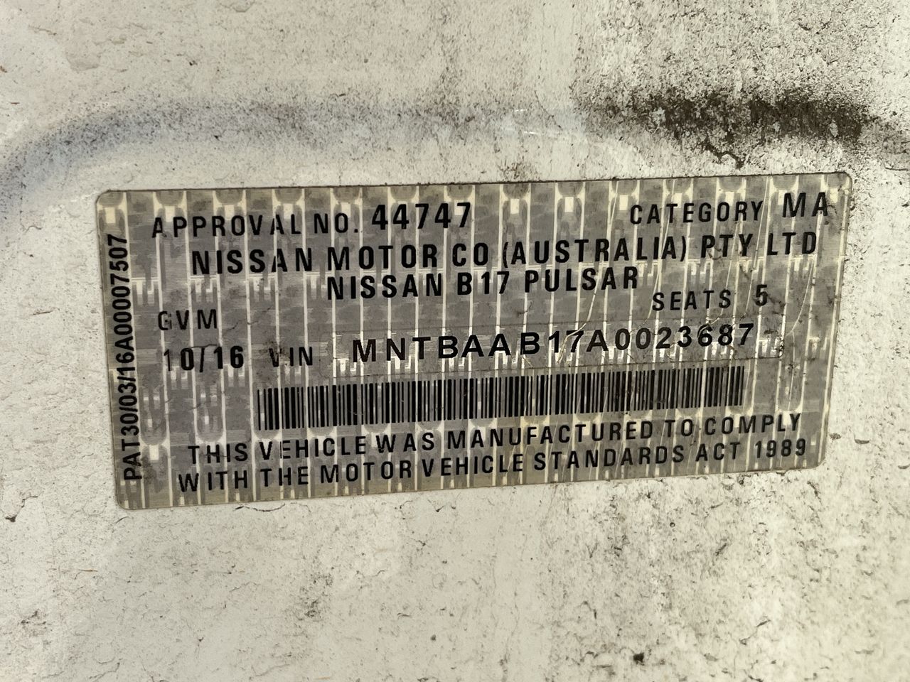 • VIN: MNTBAAB17A0023687