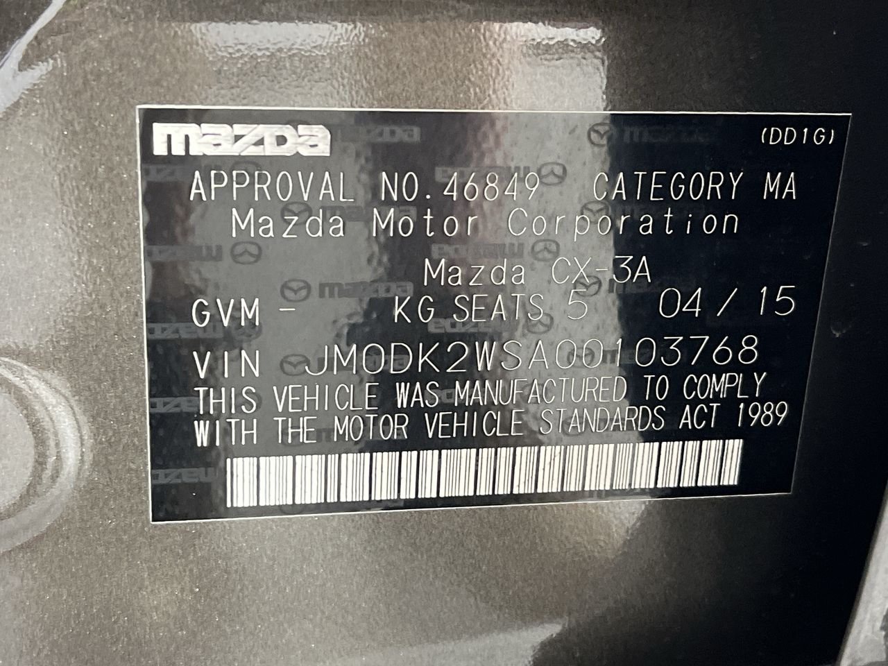 • VIN: JM0DK2WSA00103768