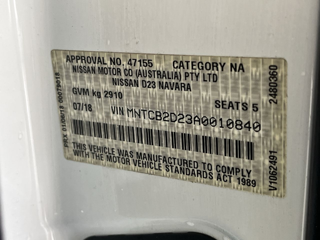 Part of Sale 2018 Nissan Navara 4X2 RX SERIES 3 T/D Automatic Dual Cab