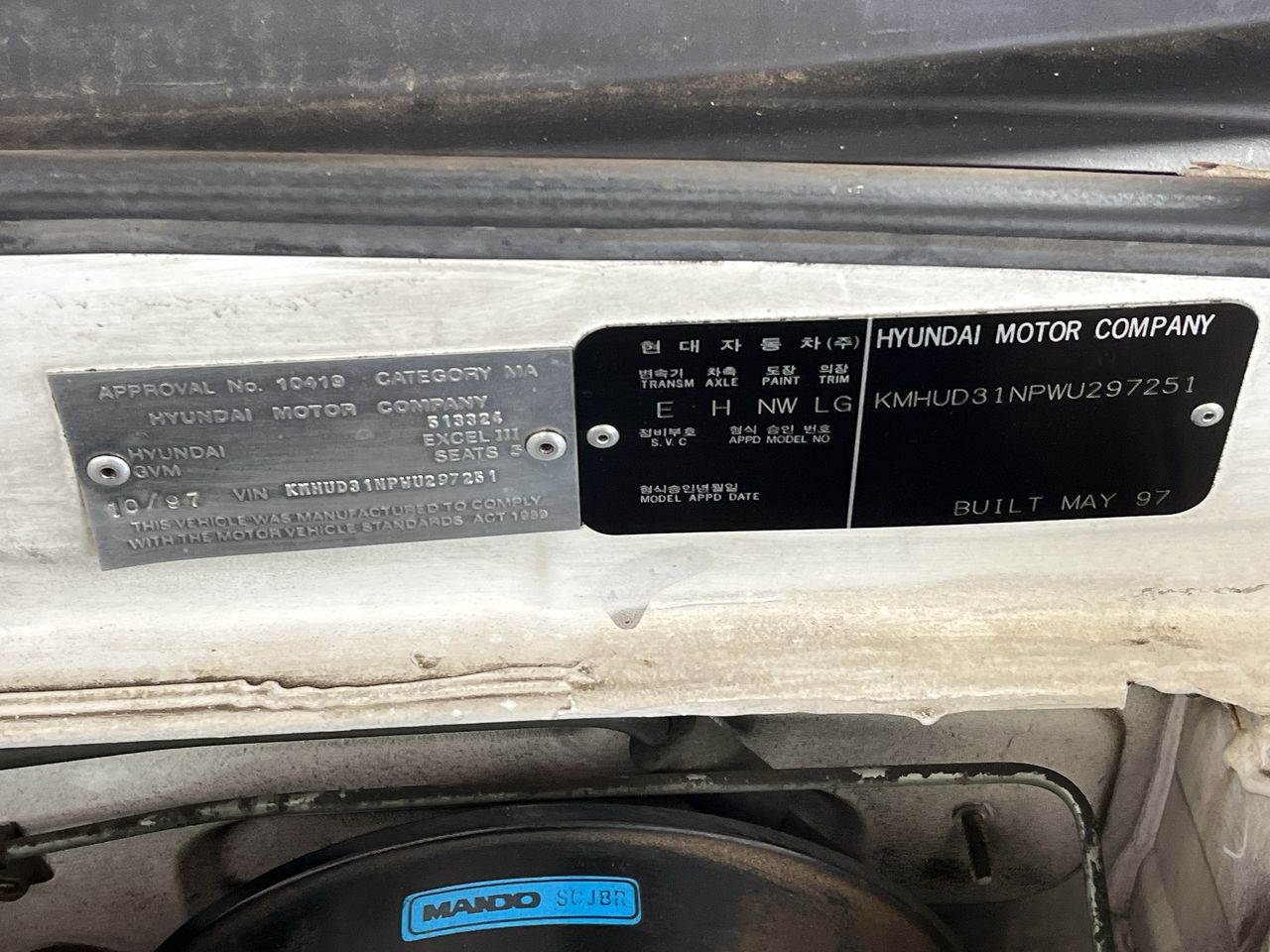 Part of Sale 1997 Hyundai Excel GX X3 Manual Hatchback