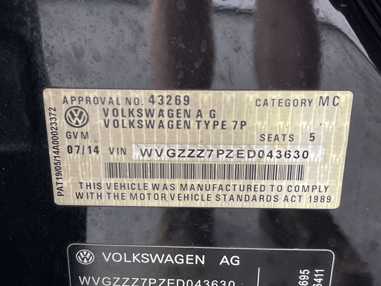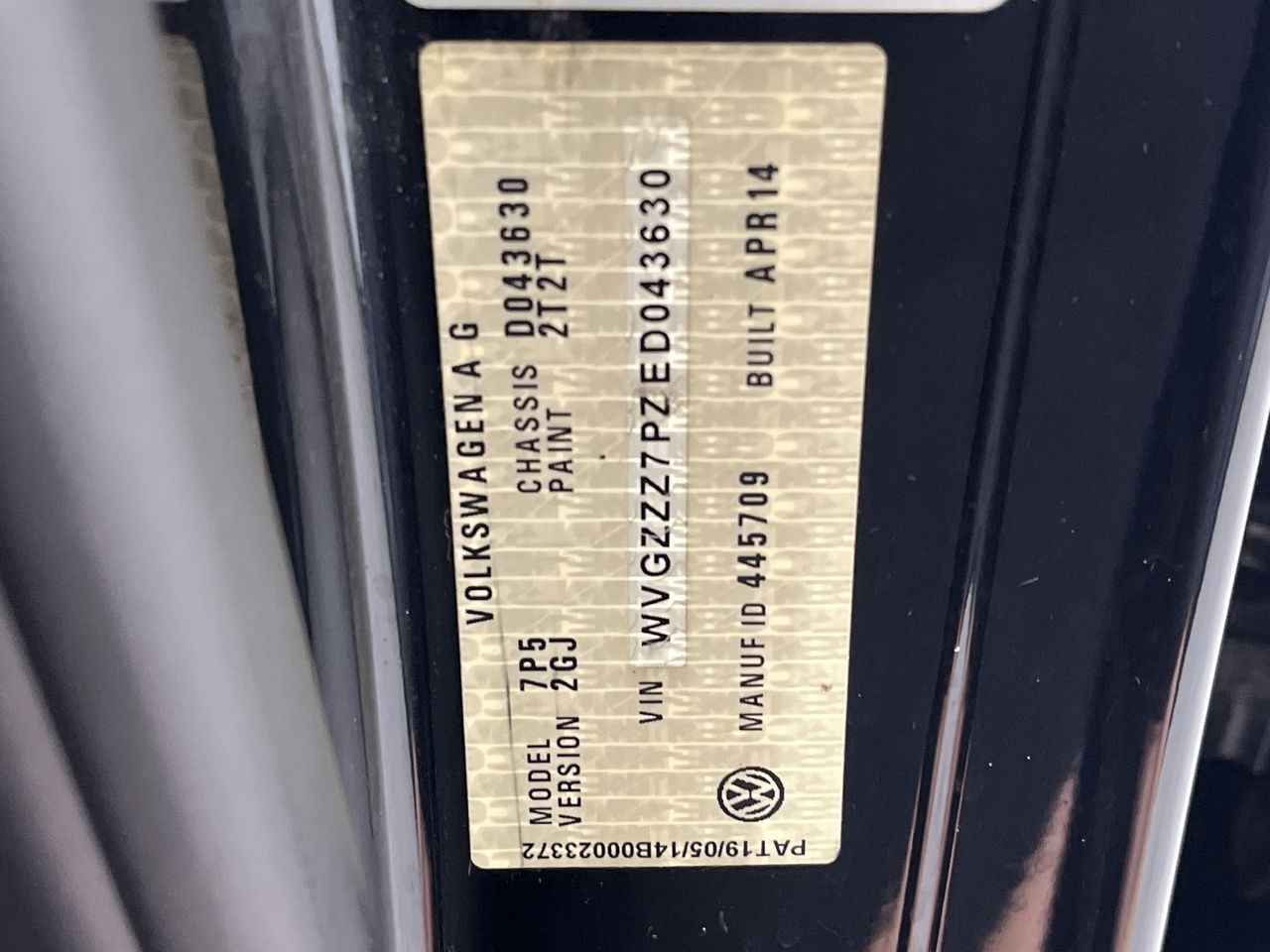 • VIN: WVGZZZ7PZED043630