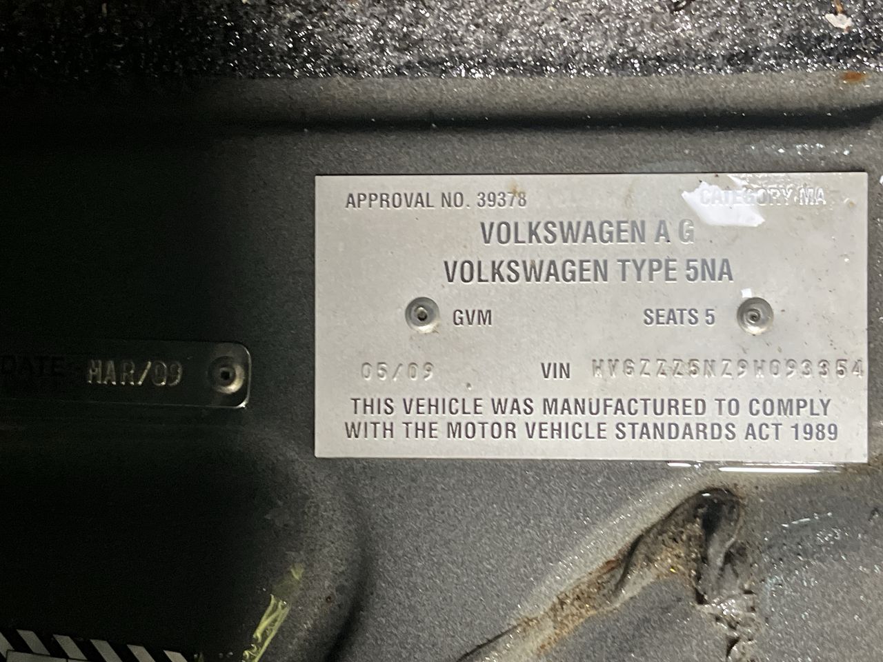 • VIN: WVGZZZ5NZ9W093354