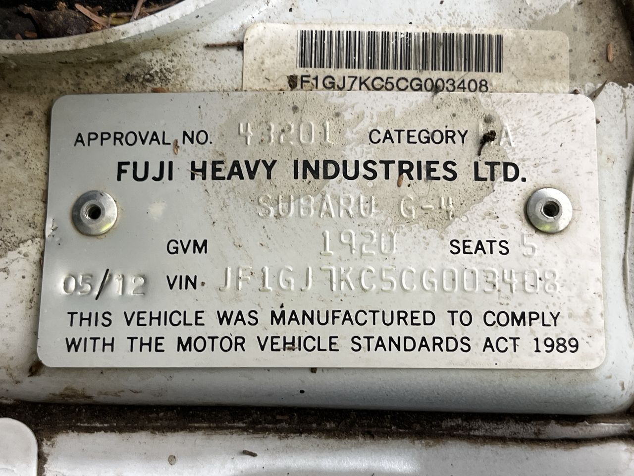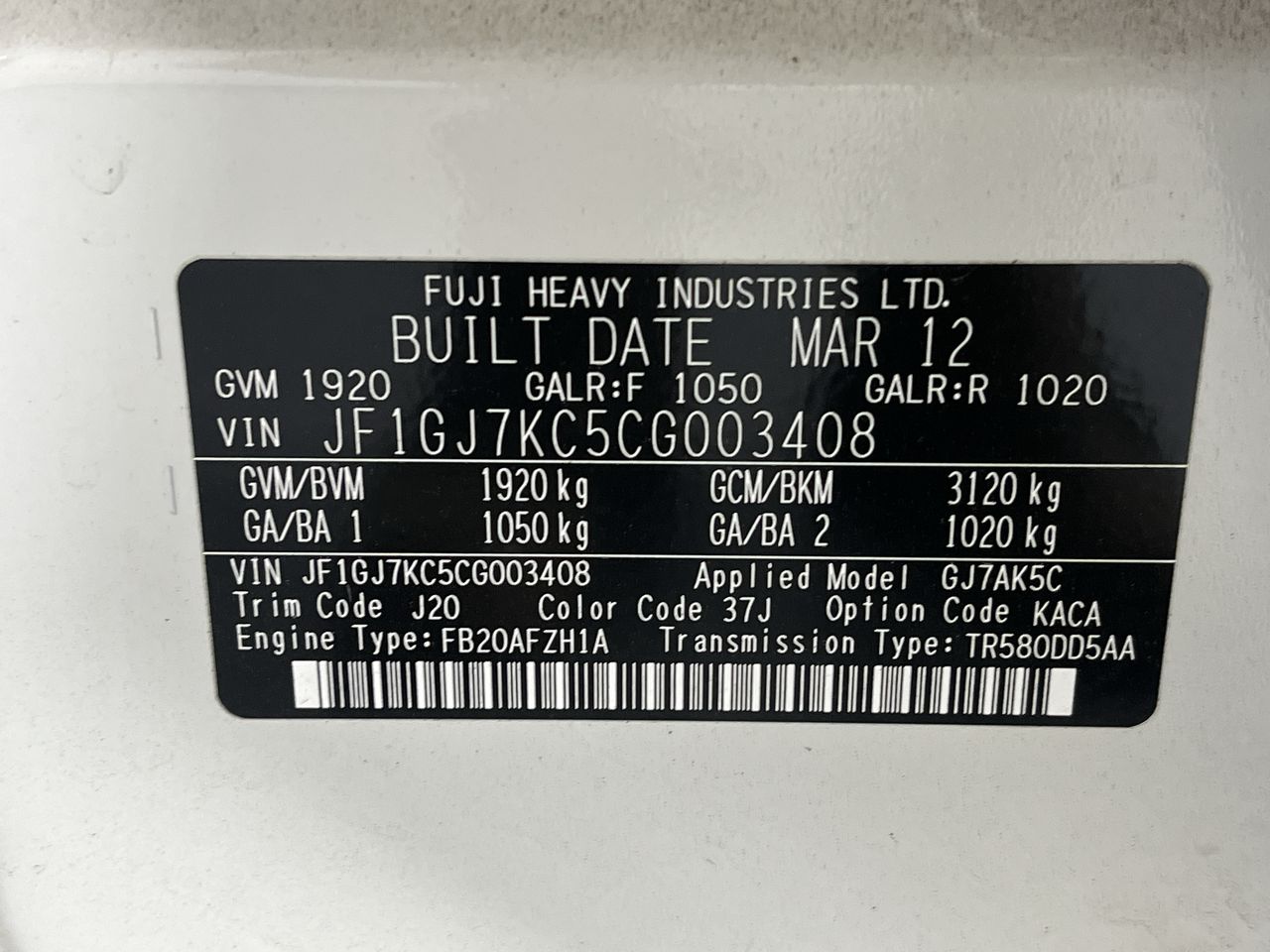 (SN:JF1GJ7KC5CG003408) (884043-1)