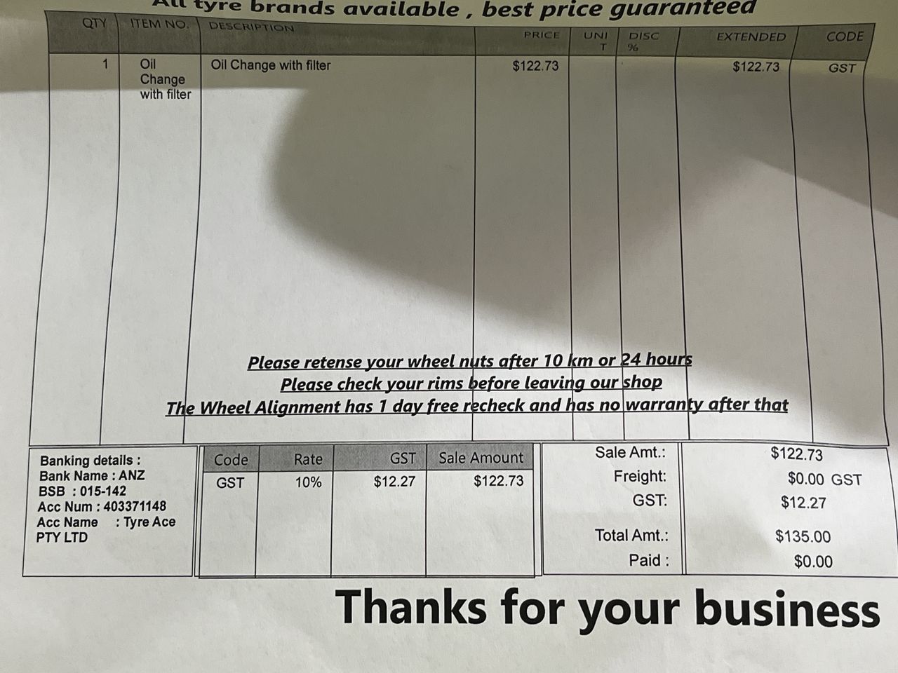 Any payment enquiries, please email accountsreceivable@grays.com.au