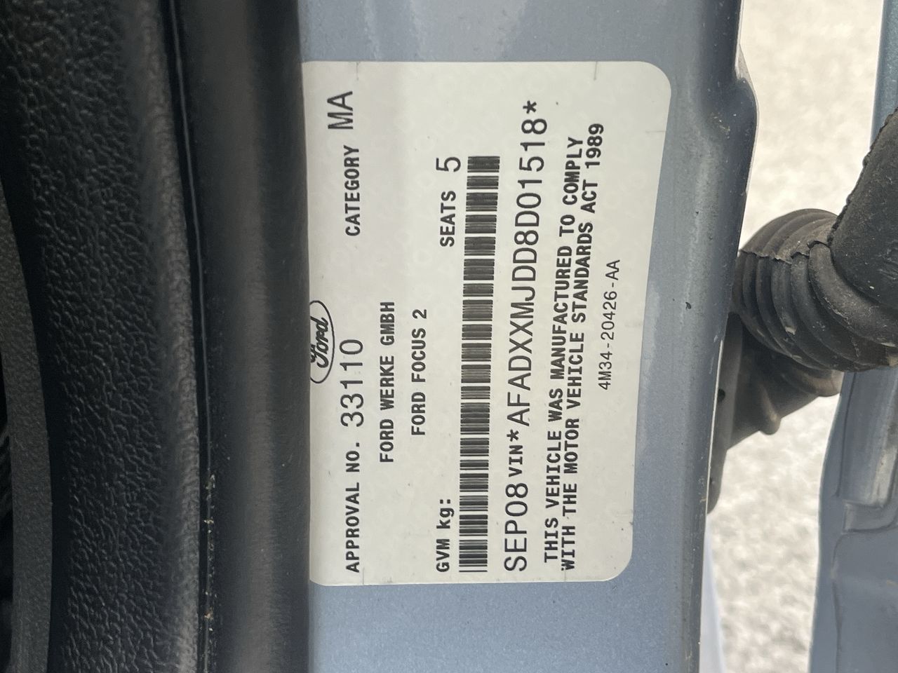 • VIN: AFADXXMJDD8D01518