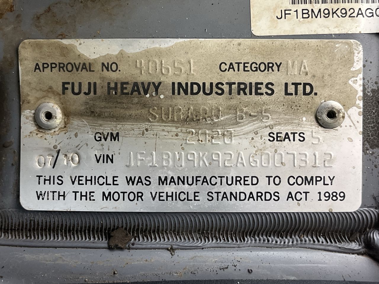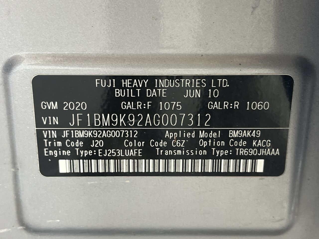 (SN:JF1BM9K92AG007312) (883889-12)