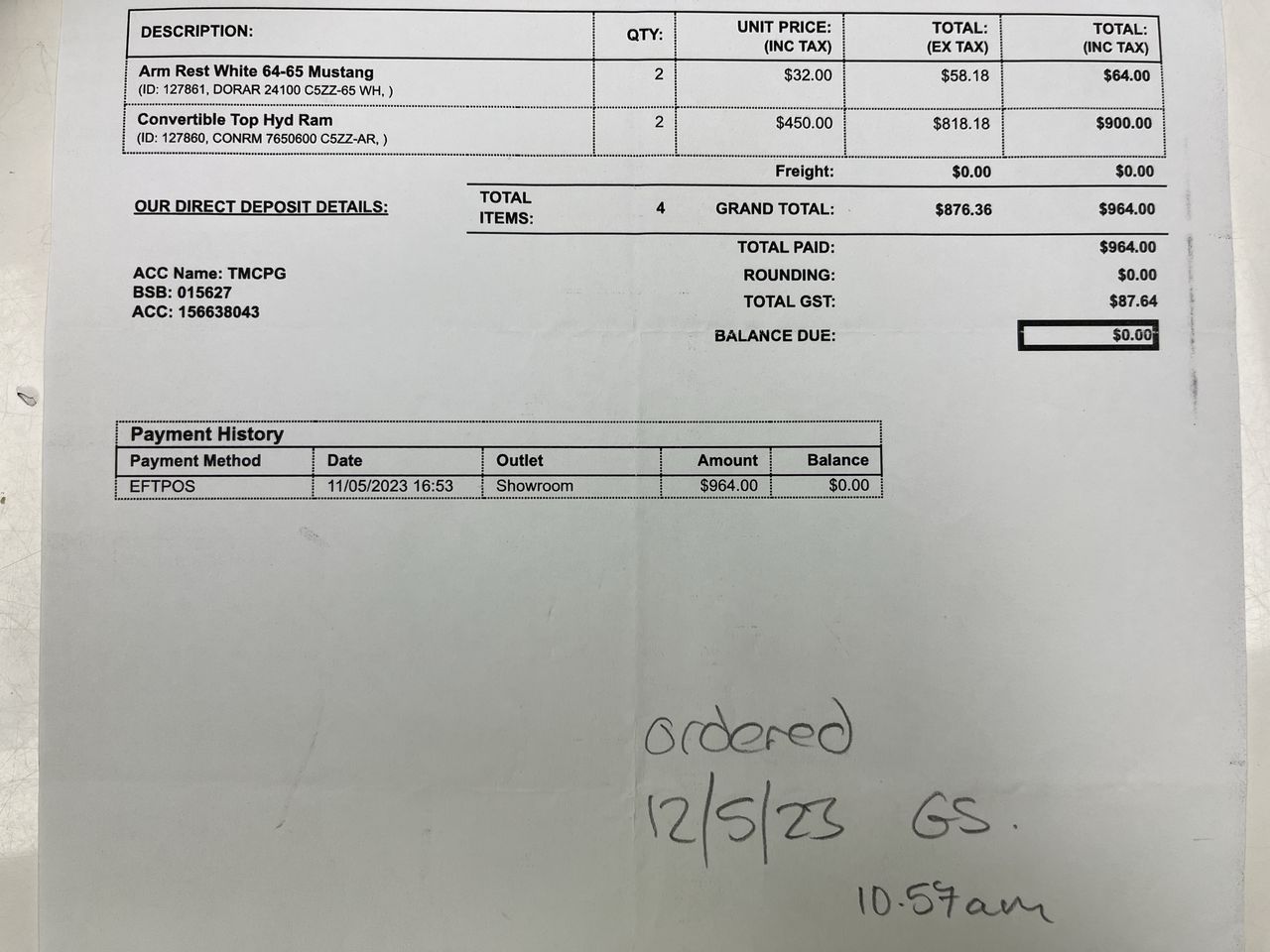 Any payment enquiries, please email accountsreceivable@grays.com.au