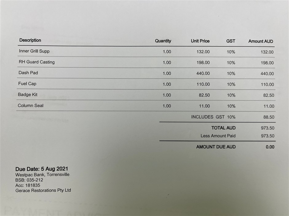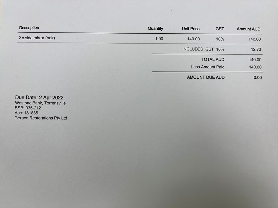Invoice totals exceeding $10,000 must be paid by direct deposit within 2 days of auction closing. For invoices totalling in excess of $10,000 Grays reserves the right to charge a deposit against the purchaser’s credit card to a maximum of $10,000 or 20% of the invoice total. In bidding in this sale, the buyer agrees without reservation to Grays doing so. Email our Accounts Team on accountsreceivable@grays.com.au for an exact invoice total. Please note that cash, personal or company cheques will not be accepted. For invoices totalling less than $10,000, your credit card will be debited within 2 days of auction closing. To assist in the processing of payments please have funds available. Invoice totals exceeding $10,000 will not be split.