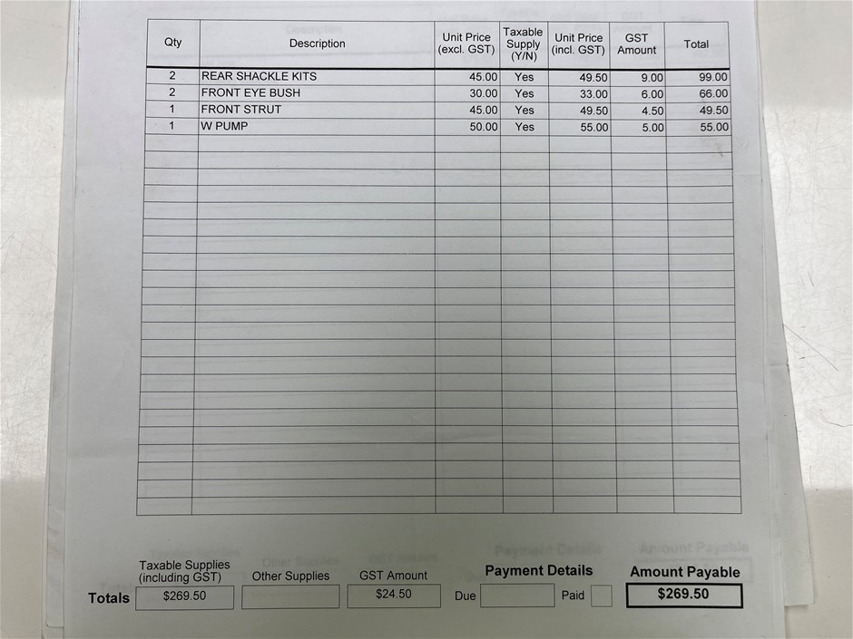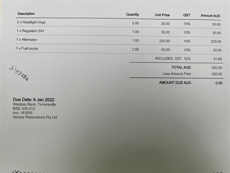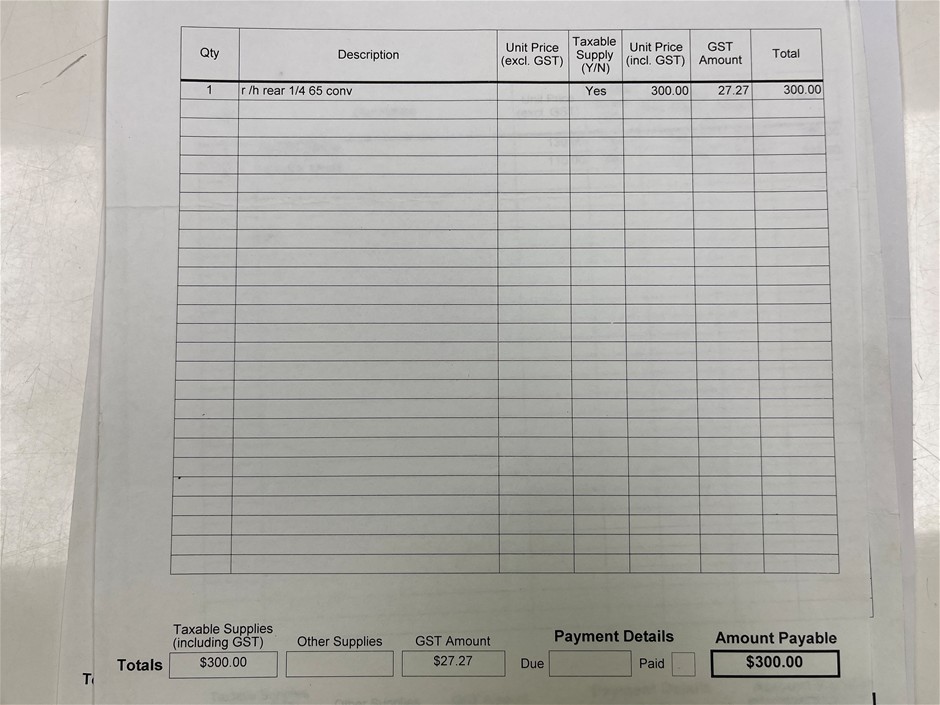 The data form (if attached below the description in the lot) is a guide only. The vehicles are not driven or tested and the description is based on an engine start-up only. There may be other damages, mechanical issues or body blemishes that have not been sighted or contained in the description at time of arrival or booking in. Therefore a full inspection is highly recommended prior to bidding.