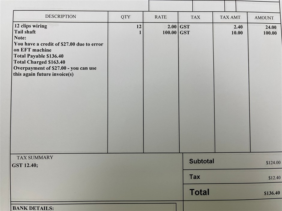 Bids on assets in this sale should be made based on your inspection and assessment of the assets. While we have endeavoured to provide correct asset details, “Descriptions, photographs & data forms (if attached in lot) should be used as a guide only, assets are sold on an as is, where is basis. If you are unsure please do not bid, as no refunds will be given”.