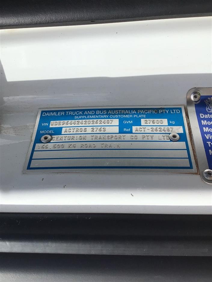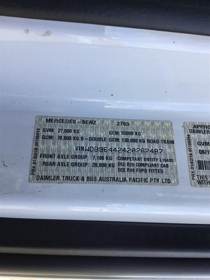 | Part of Sale | 2018 Mercedes Benz Actros 2763 6 x 4 Prime Mover Truck(130T) | ||||||||||