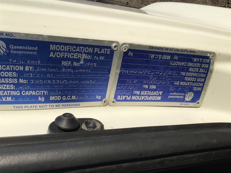 Part of Sale 2013 Hino FD 4 x 2 Cab Chassis Truck (266,661 kms)