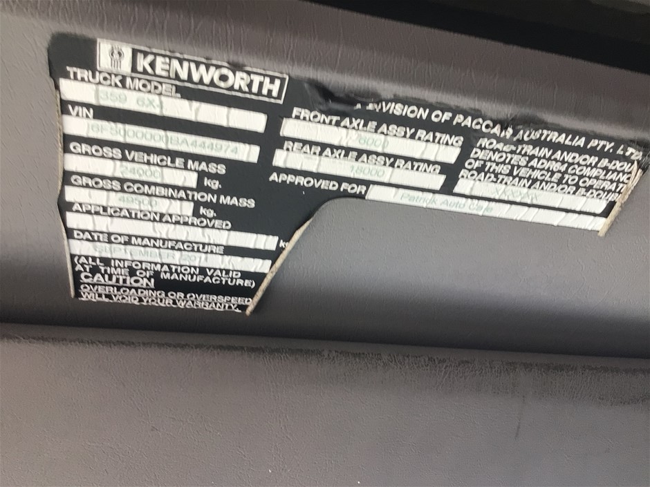 Part of Sale 2011 Kenworth T359 6 x 4 Prime Mover Truck