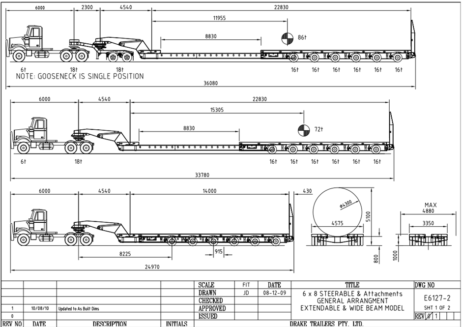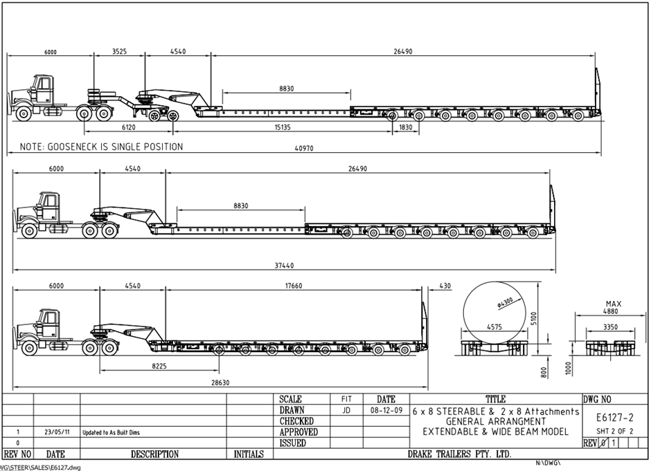 2011 Drake 8x8 (6+2) Widening Steerable Extendable Modular Low Loader Trailer