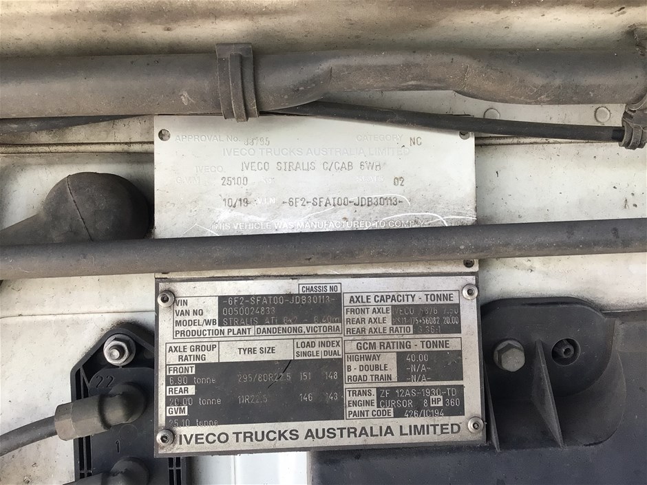 | Part of Sale | 2019 Iveco Stralis 6 x 2 Curtainsider Rigid Truck | ||||||||||