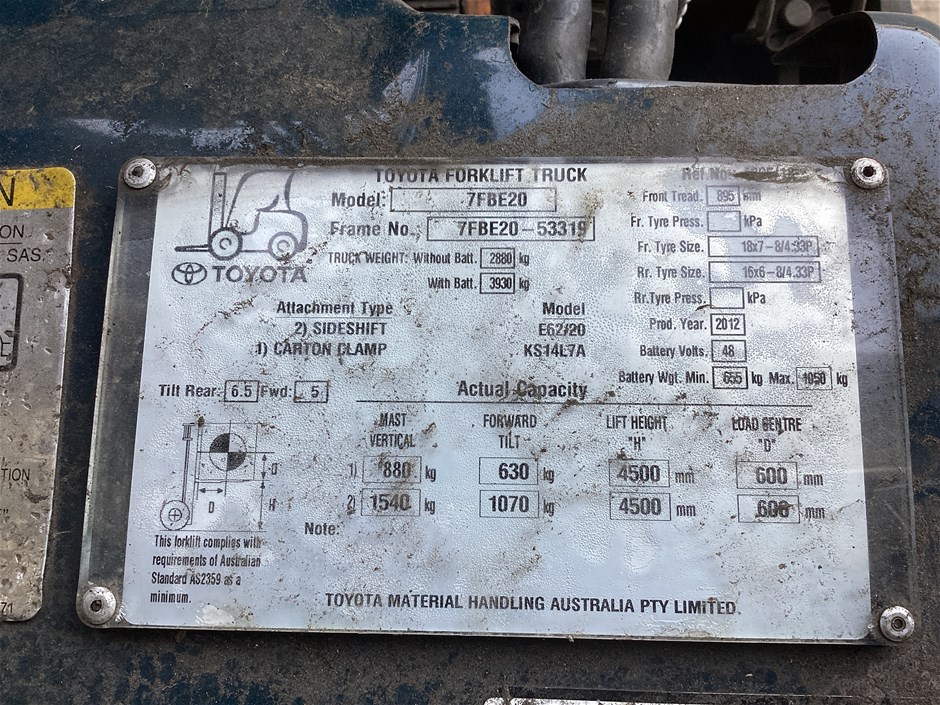 | Part of Sale | Unreserved Toyota 7FBE20 Counterbalance Forklift - QLD | ||||||||||