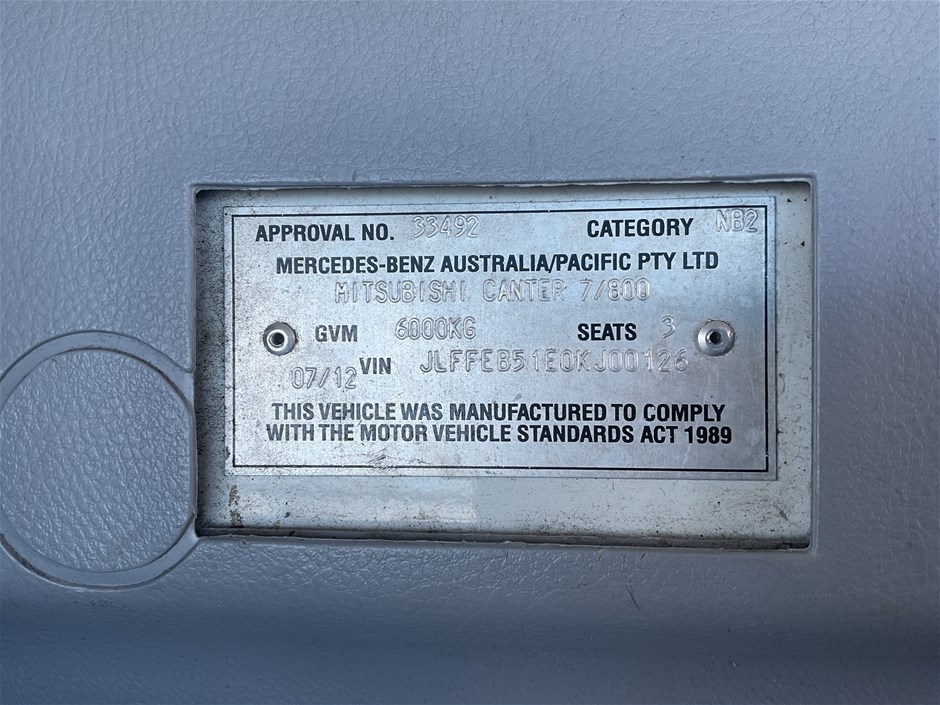 Part of Sale 2012 Mitsubishi Canter 4 x 2 Pantech Truck