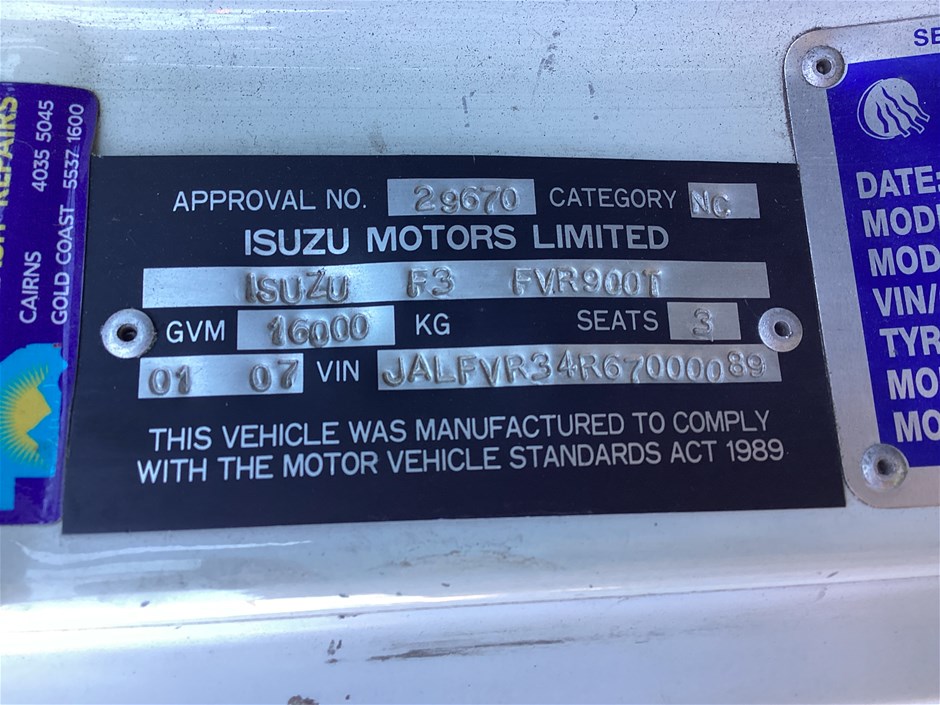 | Part of Sale | 2007 Isuzu FRR 4 x 2 Curtainsider Rigid Truck | ||||||||||